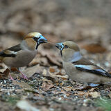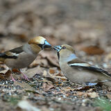Hawfinches sharing spit
